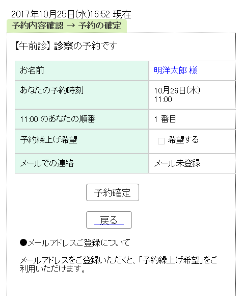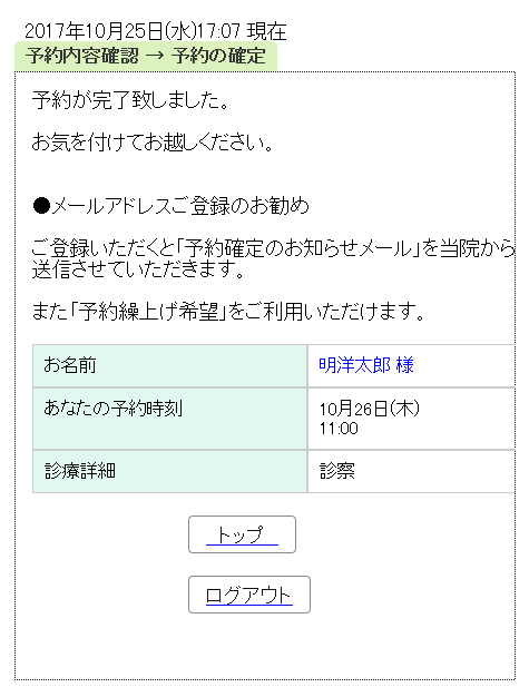 予約はこれで完了です。
